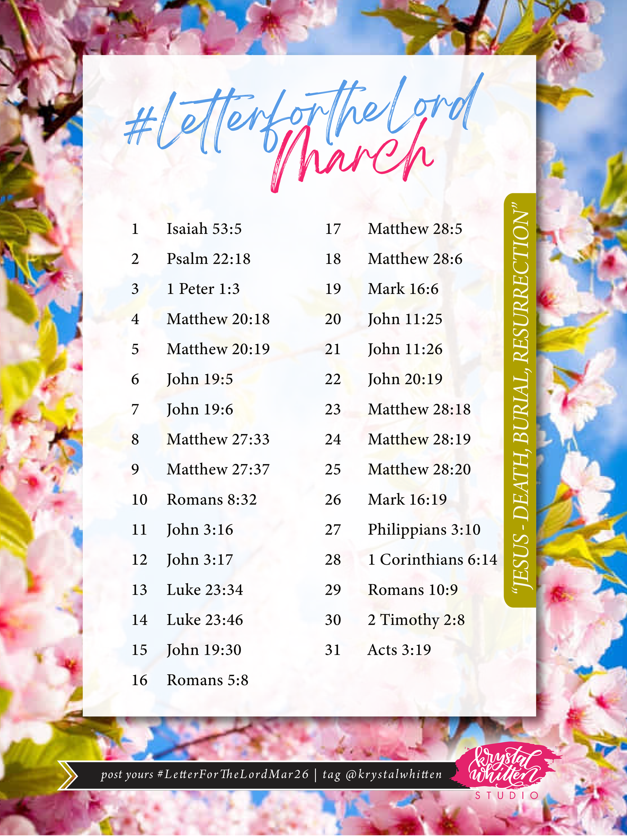 Hi, I'm Krystal — a left-handed lettering artist and designer of over a decade who believes deeply in the beauty and power of God’s Word. I create hand-lettered Scripture designs for creative makers and crafters who want to add faith, meaning, and artistry to the things they create.