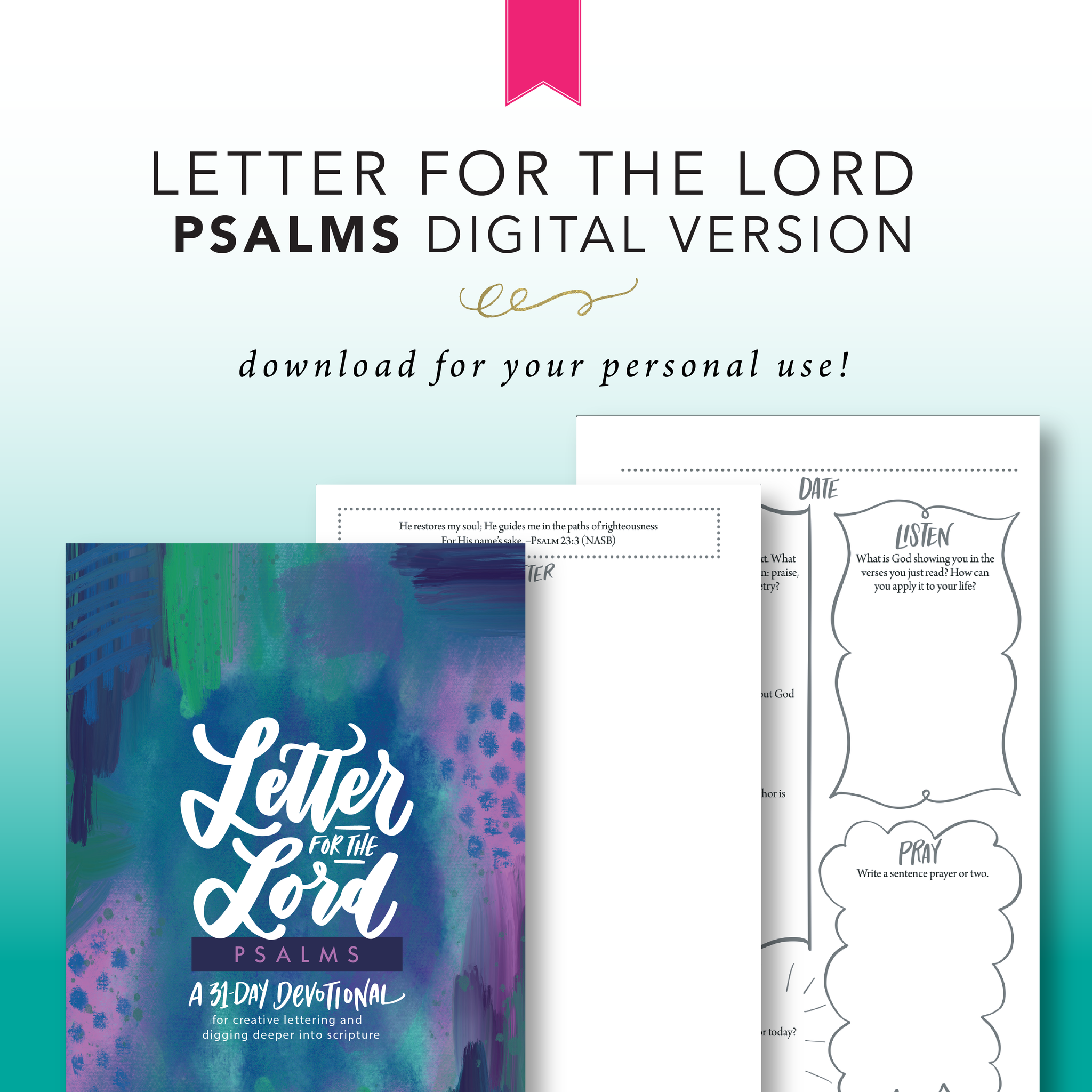 The Letter for the Lord: Psalms Devotional is a 31-day devotional journal for creative lettering and digging deeper into scripture. Take a journey through Psalms and:
